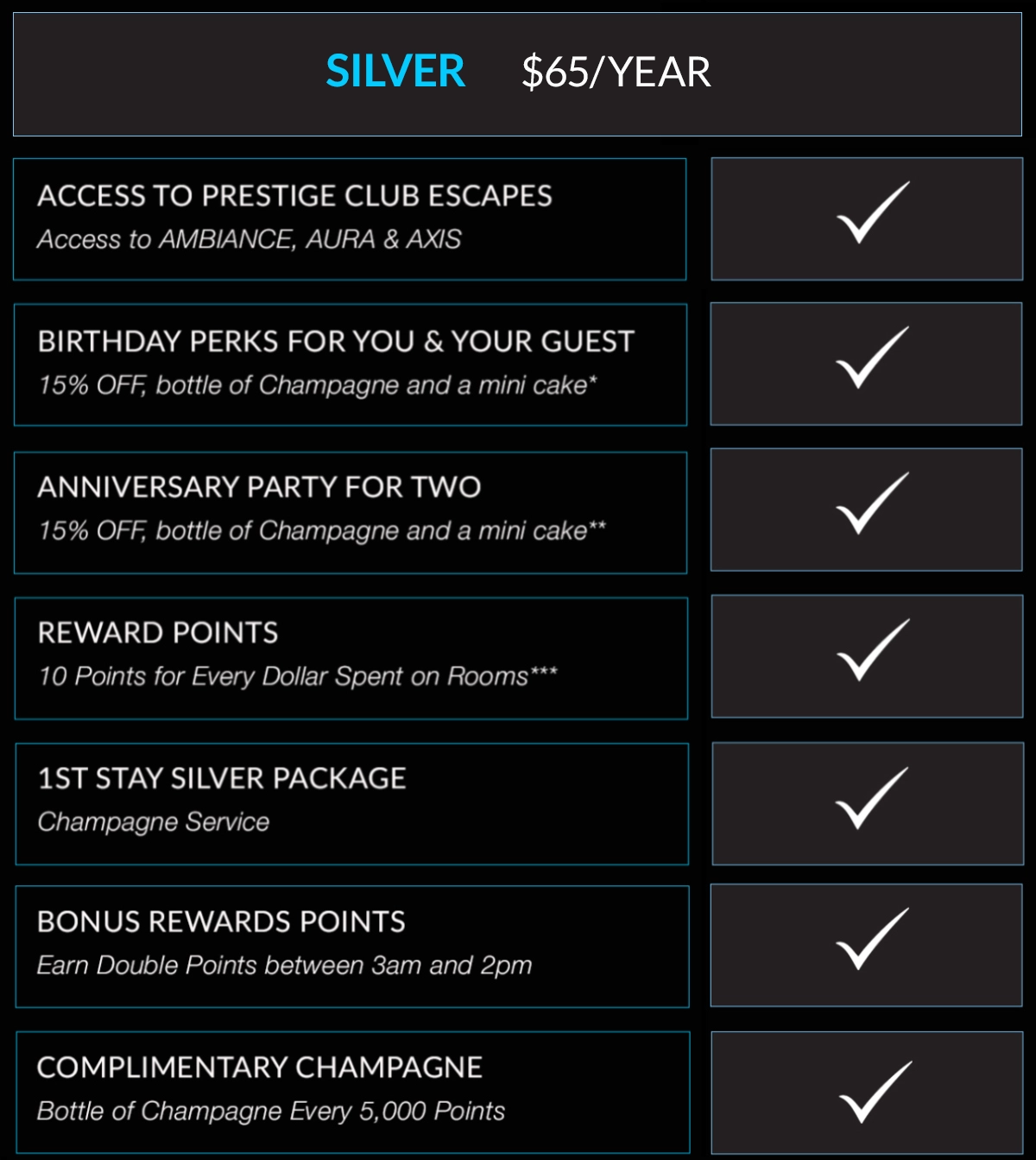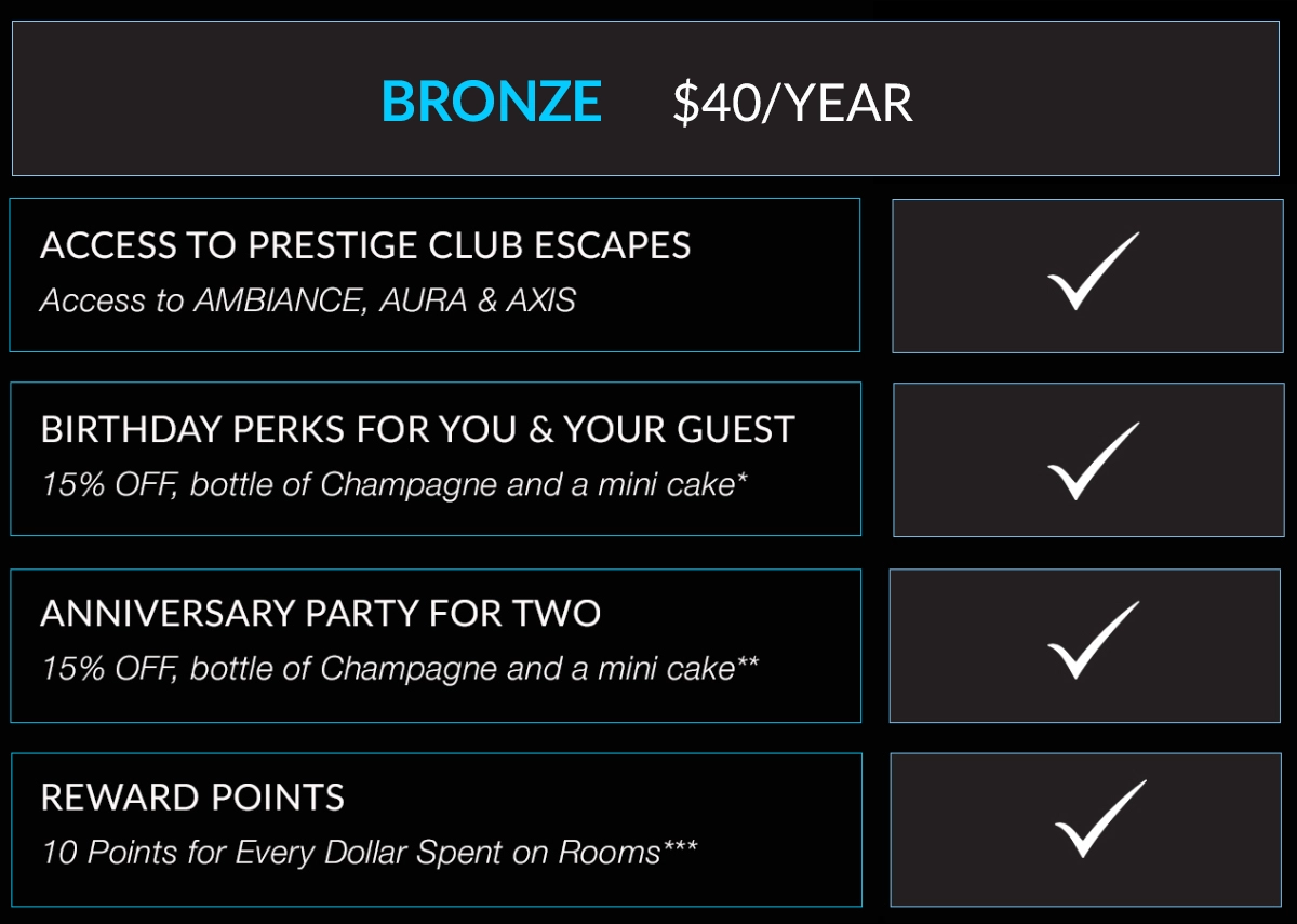 - Prestige Club is a private club that caters strictly adult couples. Membership in Prestige Club is required to stay at AMBIANCE, AURA or AXIS.